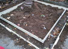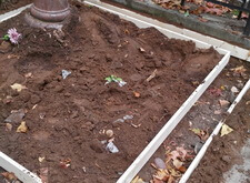 Мы устанавливаем подставки для будущих плит и ставим на место старых памятники, которые решено было оставить.