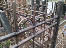 Далее демонтируем все с территории могилы и выпрямляем ограду. Для этого потребовалось полностью откопать две задние ножки, выпрямить ограду и заново залить цементом.
