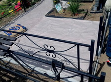 Покрытие замыли, позволив ему окончательно схватиться, а заодно устранив пыль, появившуюся на памятниках и оградке в процессе укладки.