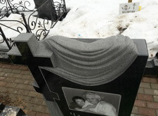 Мы изготовили саму гранитную плиту, вырезав фигуру православного креста и траурное покрыло.